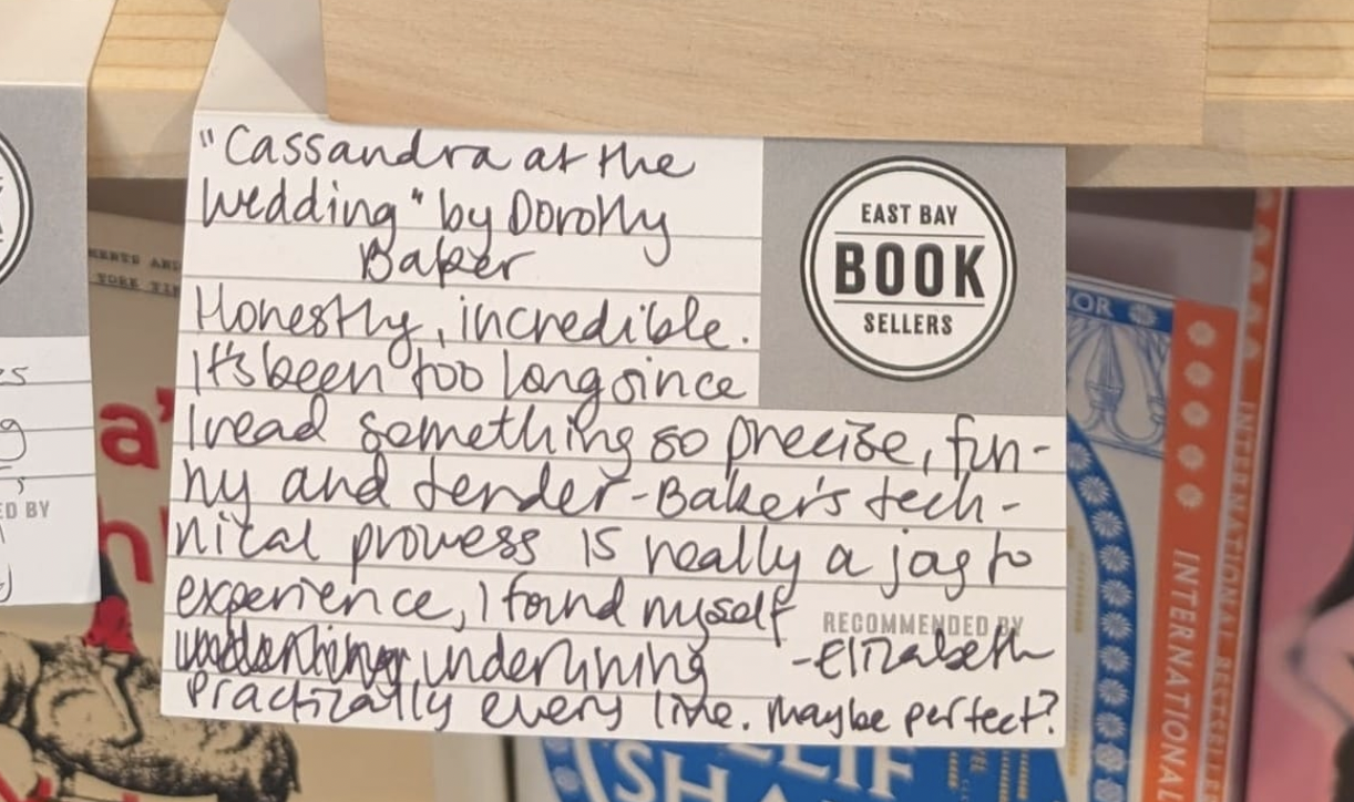 We meet Cassandra as she prepares to leave Berkeley and drive towards the Sierra Nevadas to her family ranch, where her twin sister will be married. Maybe. I read it in nearly one sitting, jotted a few lines on a staff recommendation card at work, stuck it on display, and went about my life. Customers asking what I had read recently got a copy handed to them along with the assurance that this was a funny, beautiful book. I mostly neglected to tell them it is, by and large, about suicide. I think I forgot.