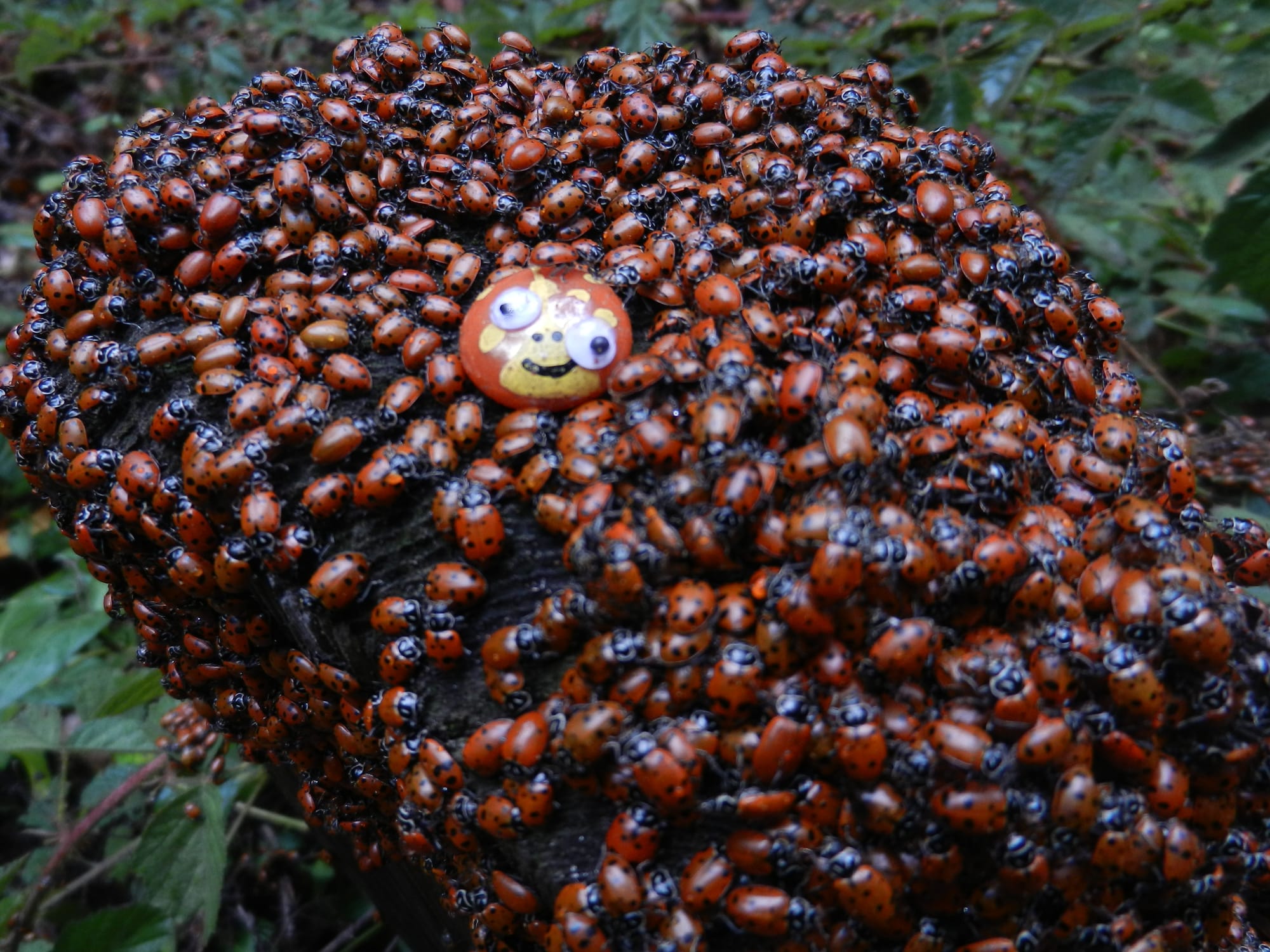 As other hikers asked themselves that same question, I watched closely as the ladybugs climbed frantically over each other, like people rushing to find the best seat in the theater, finding their best seat for winter.