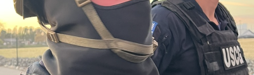 The good bearded Coast Guard guy chooses one of us (a white guy with a veteran’s cap) to check the ID. We let the car pass. We wait.