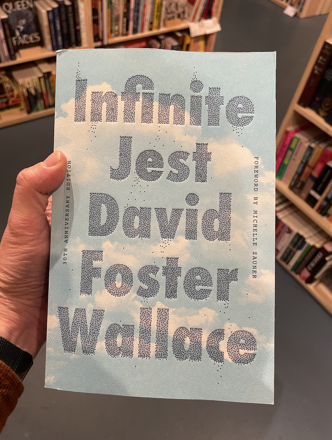 It wasn’t obvious that the book was going to stick around for thirty years. The Important Novels of the mid-nineties, if I remember right, were supposed to be American Pastoral and Underworld, chronicles of the past by laureled men over sixty. Infinite Jest came busting in among them like a graphomaniac Kool-Aid Man, young, brash and huge, slinging its girth everywhere. It wanted to be important (Little, Brown and Company really wanted it to be important), but it was destined for subculture, clearly too weird for the canon. Its move to centrality came gradually, at the same pace that its own reputation occluded it: a book name-checked but never read, 2.85 pounds of bragging rights, cringe to carry in public. It also got tagged as a bros’ book, no less toxically masculine than the Updikes and Roths it had displaced, the province of—as Michelle Zauner’s new foreword puts it—“a particular breed of college-aged men who talk over you.” When a thirtieth-anniversary celebration appeared on the ORB calendar, my first reaction was the warm glow of fandom. My second: But who else is going to be there?