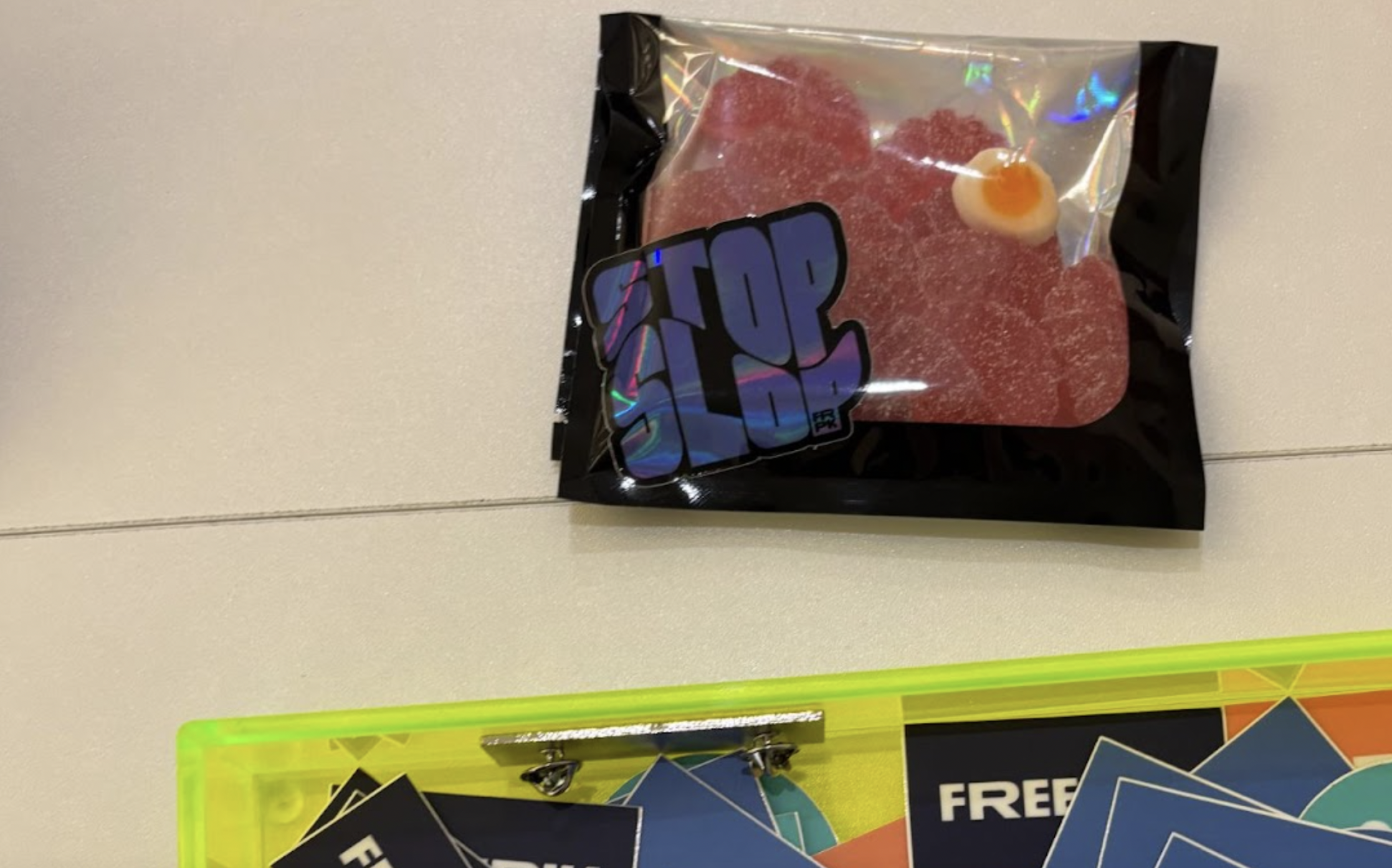 The event took place at an office in SoMa. When I saw a woman with a sweater wrapped around her shoulders, well-fitting pants, and a big leather tote walk through the entrance, I realized that this would be a very different experience than the slop-filled and sloppy Monday night screening. I walked up the stairs to a check-in table, put my name on a nametag, and noticed a bag of candy with a sticker that said “STOPSLOP” on it. Ok, I thought, maybe this event won’t be as depressing as last night’s.