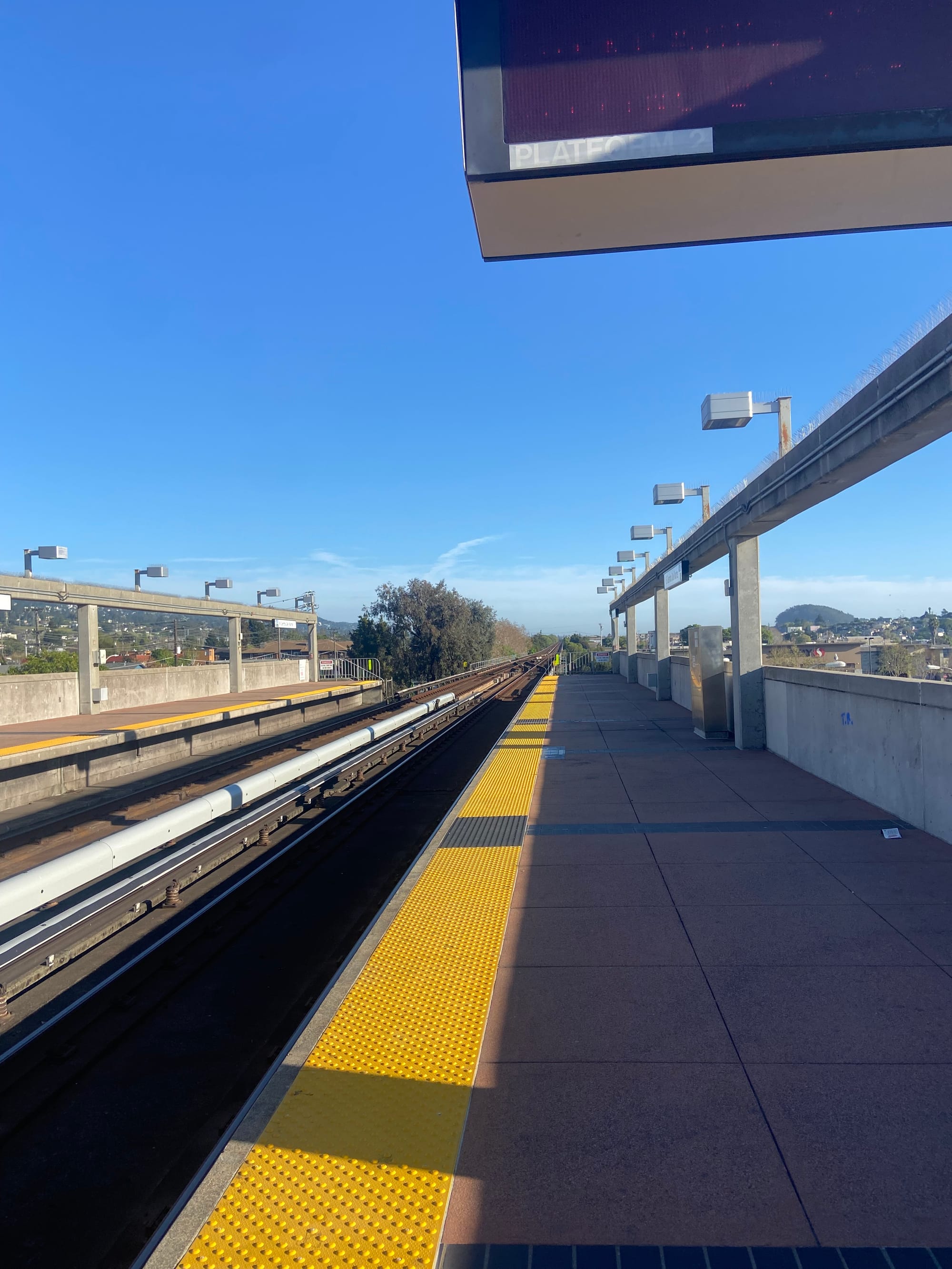 We don’t stick around to find out. We’re on our own quest. Decked out with our own provisions—massive sandwiches, full water bottles, power banks and cords and a Thai herbal inhaler for nausea (iykyk)—my friend A and I descend for the first leg of our trip: an hour on the orange line from North Berkeley to Milpitas. Today is the second day of Spring, and we’re going to circle the entire Bay on public transit.