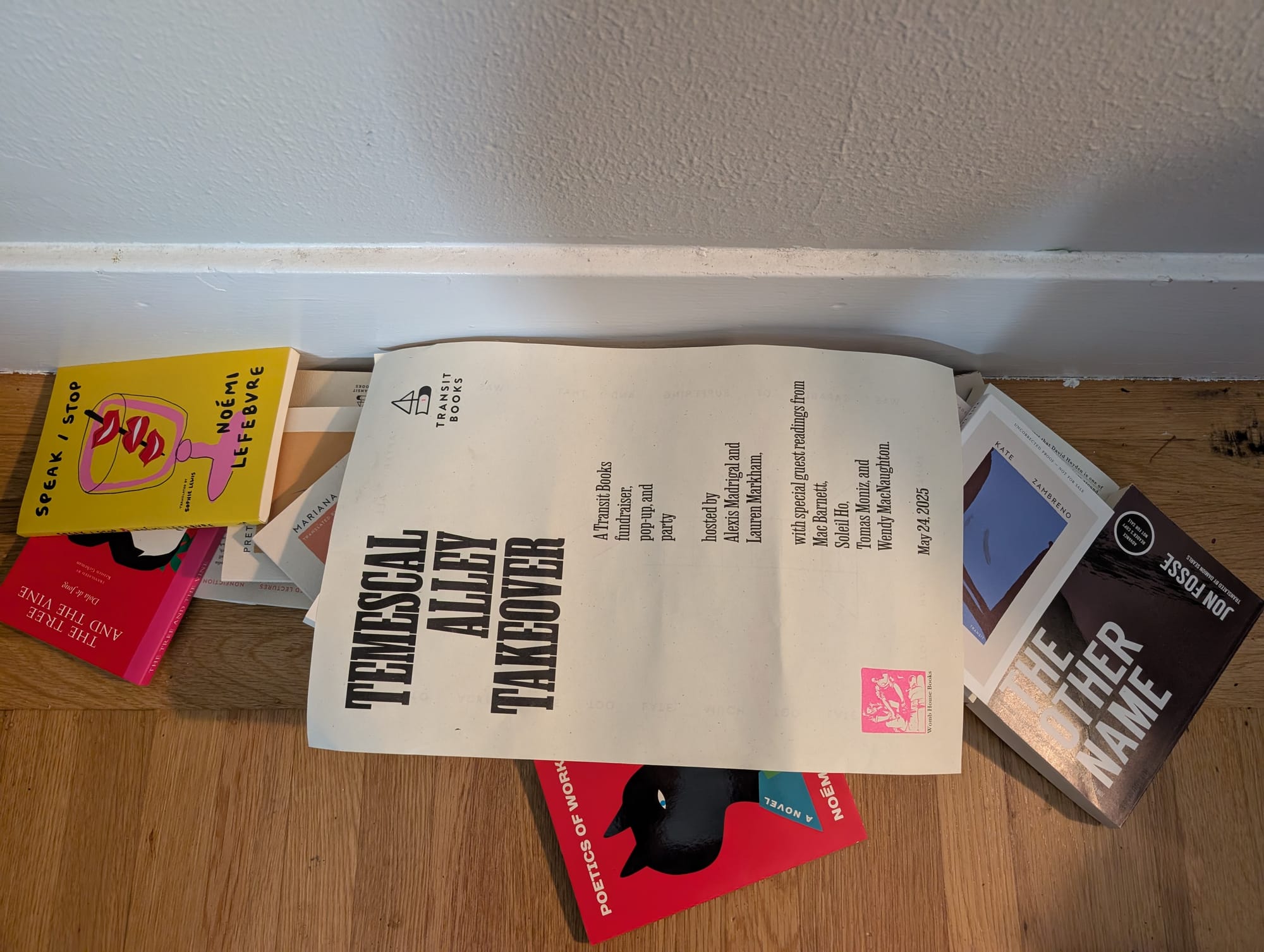 I wasn’t exactly wrong when I suggested exactly this to the dapperly brown-cravatted and long-pants wearing Adam Levy—one half of Transit’s husband-wife publishing duo—and cleverly offered that the NEA’s budget only demonstrates the long-running and glaring sidelining of culture among our national priorities, which arts and culture people have long learned to live with. Of course it does. US art funding sucks and always has; it’s bad that Trump is axing all of it, but still, that forty thousand was a surprisingly small fraction of Transit’s current budget. They were already mostly out in the cold. (What a clever observation! Remember, it’s sunset in May, the wind is coming up and you’re cold.)